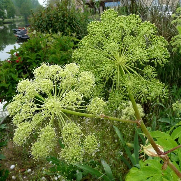 L’angélique, dite encore « herbe aux anges », doit son nom à ses prétendues vertus magiques et à l’odeur aromatique suave et musquée qu’elle répand. Cette ombellifère géante passait en effet pour conjurer les envoûtements et les sorciers ne résistaient pas à sa bonne odeur.
