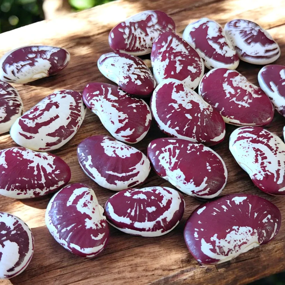 Le Haricot de Lima ‘Christmas’ est une ancienne variété originaire d’Amérique du Sud dont les belles graines plates de couleur blanche marbrée de rouge se consomment en demi-sec. Comme en atteste des fouilles archéologiques, l’espèce (Phaseolus lunatus) dont fait partit ce haricot singulier, était déjà cultivé au Pérou il y a 8 000 ans, c’était notamment une culture vivrière des peuples indigènes Nazca et Mochica.