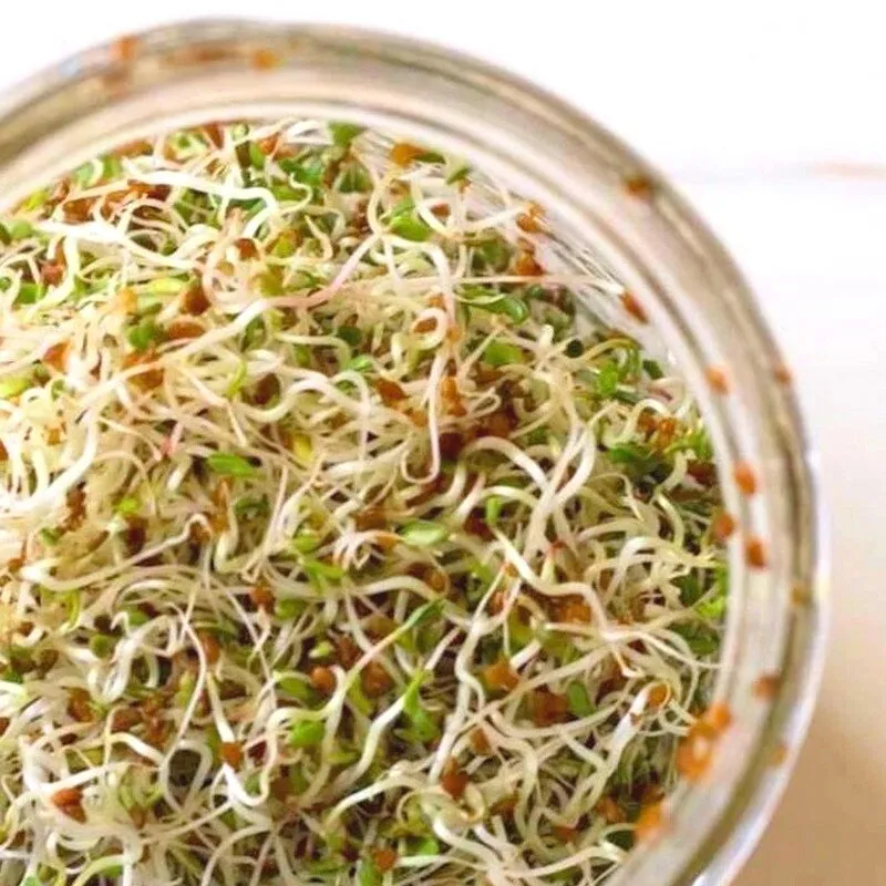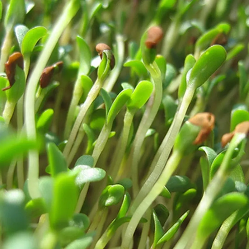 La Luzerne « Alfalfa » (Medicago sativa) est une plante de la famille des légumineuse. Elle est comestible utilisée sous forme de graines germées en cuisine. Idéale pour agrémenter vos salades et vos plats, l’Alfalfa est une micro-pousse très rafraîchissante, à la saveur douce et agréable. A consommer seule, en mélange ou en sandwich. De culture facile, elle est une des graines à faire germer les plus connues et appréciées. Germination entre 5 et 7 jours.