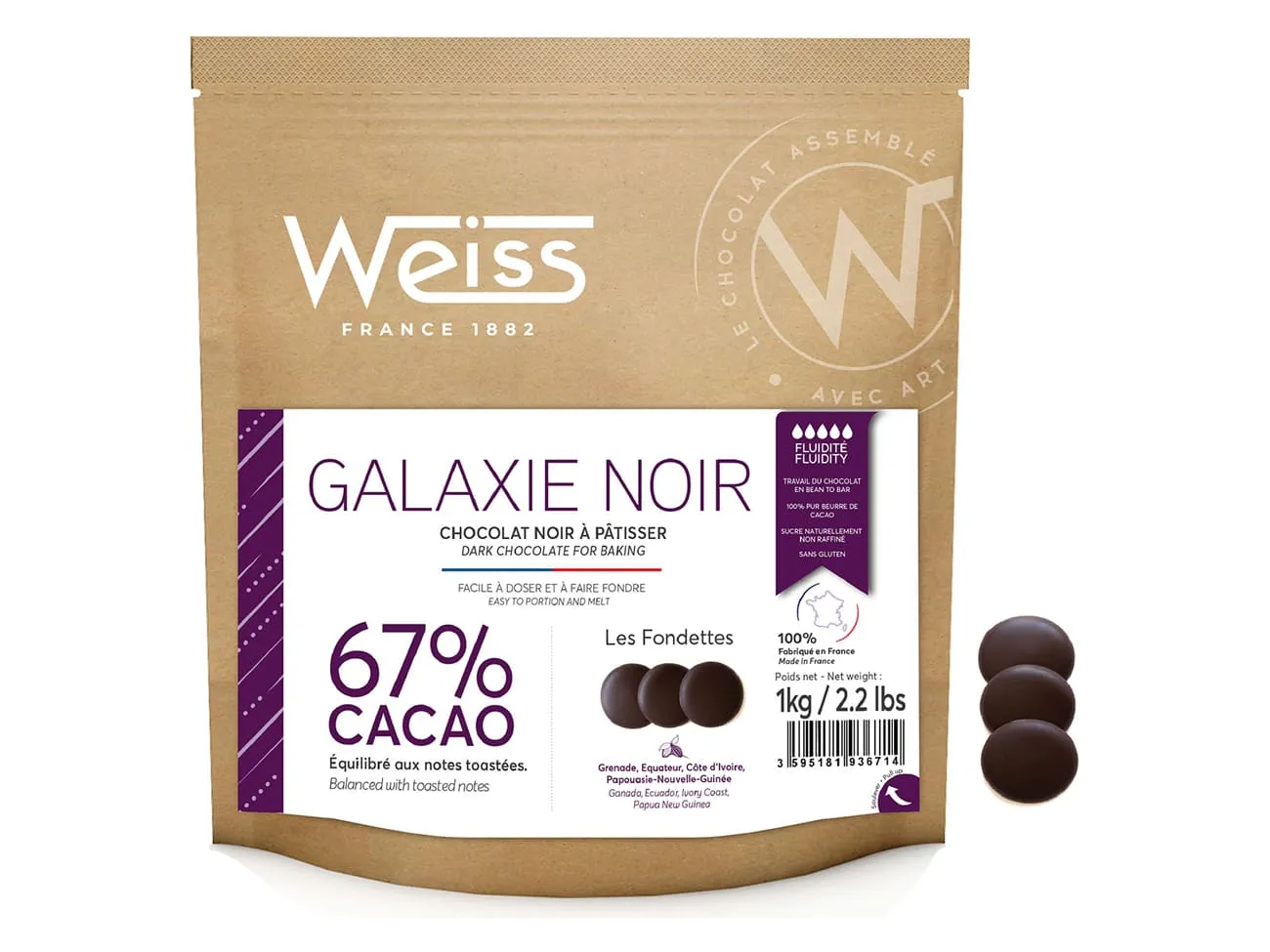 Le chocolat noir Galaxie de la chocolaterie Weiss sera le chocolat idéal pour l’élaboration de vos pâtisseries.